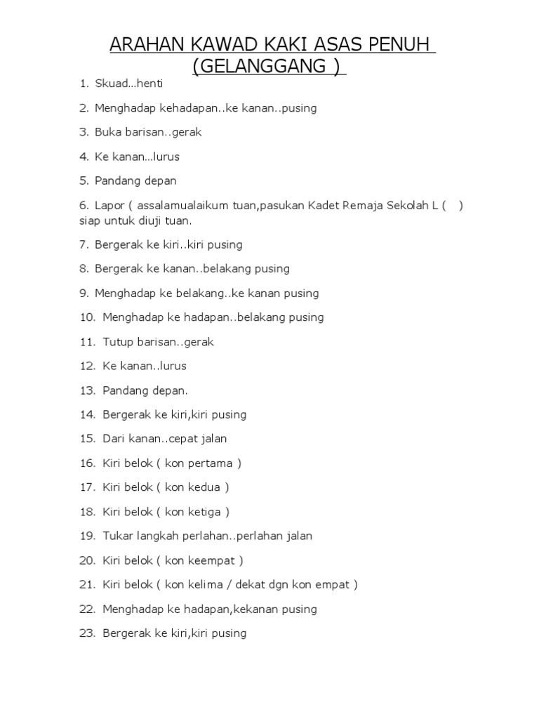 Arahan Kawad Kaki Asas Penuh Pdf